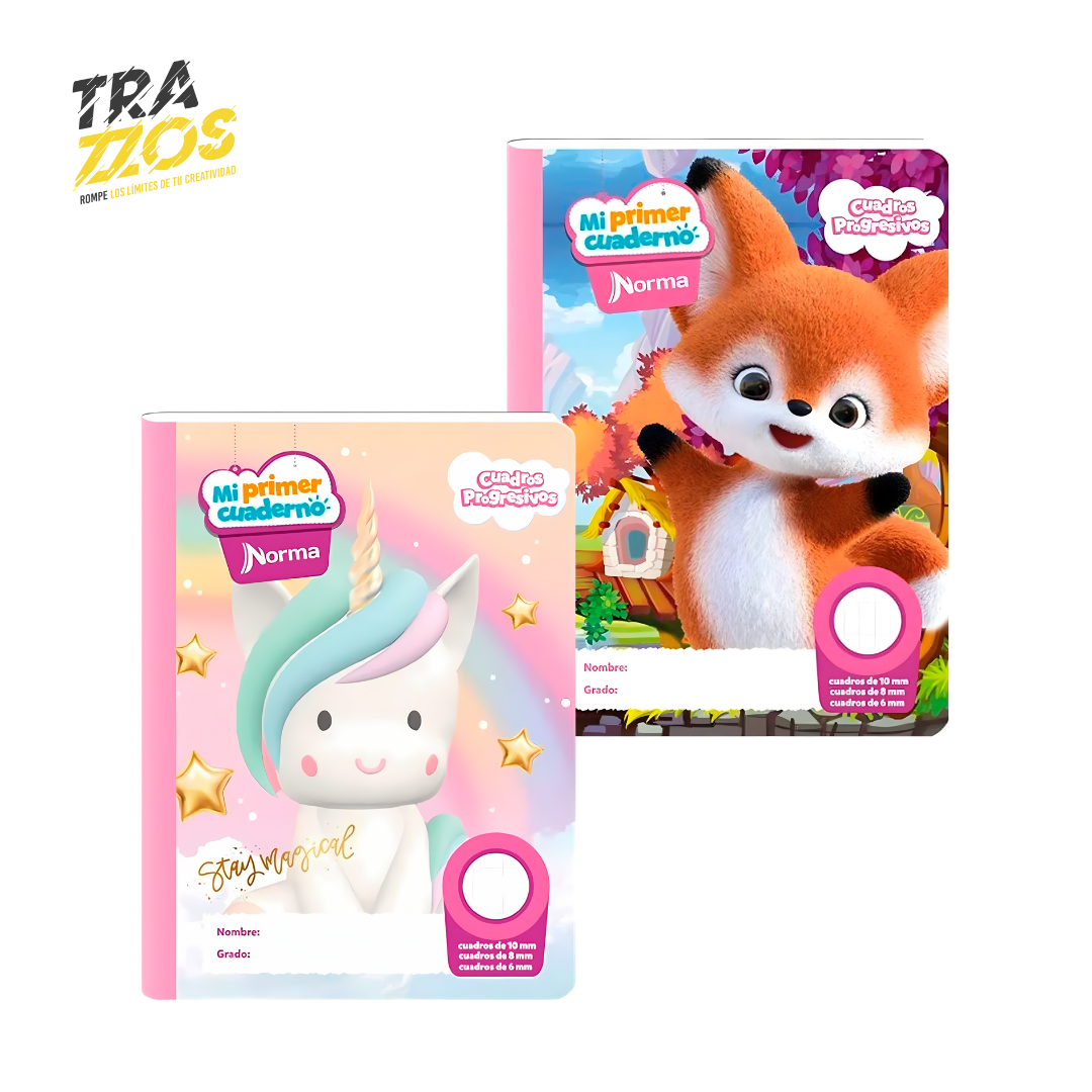 El Cuaderno Norma Progresivo 100 Hojas es ideal para el proceso de aprendizaje de escritura y matemáticas en los primeros grados escolares, gracias a su formato de cuadros progresivos (10 mm, 8 mm y 6 mm) que acompaña el desarrollo de la motricidad fina; incluye carátulas coloridas y divertidas que motivan a los niños y espacio para escribir nombre y grado, facilitando su identificación en el colegio.