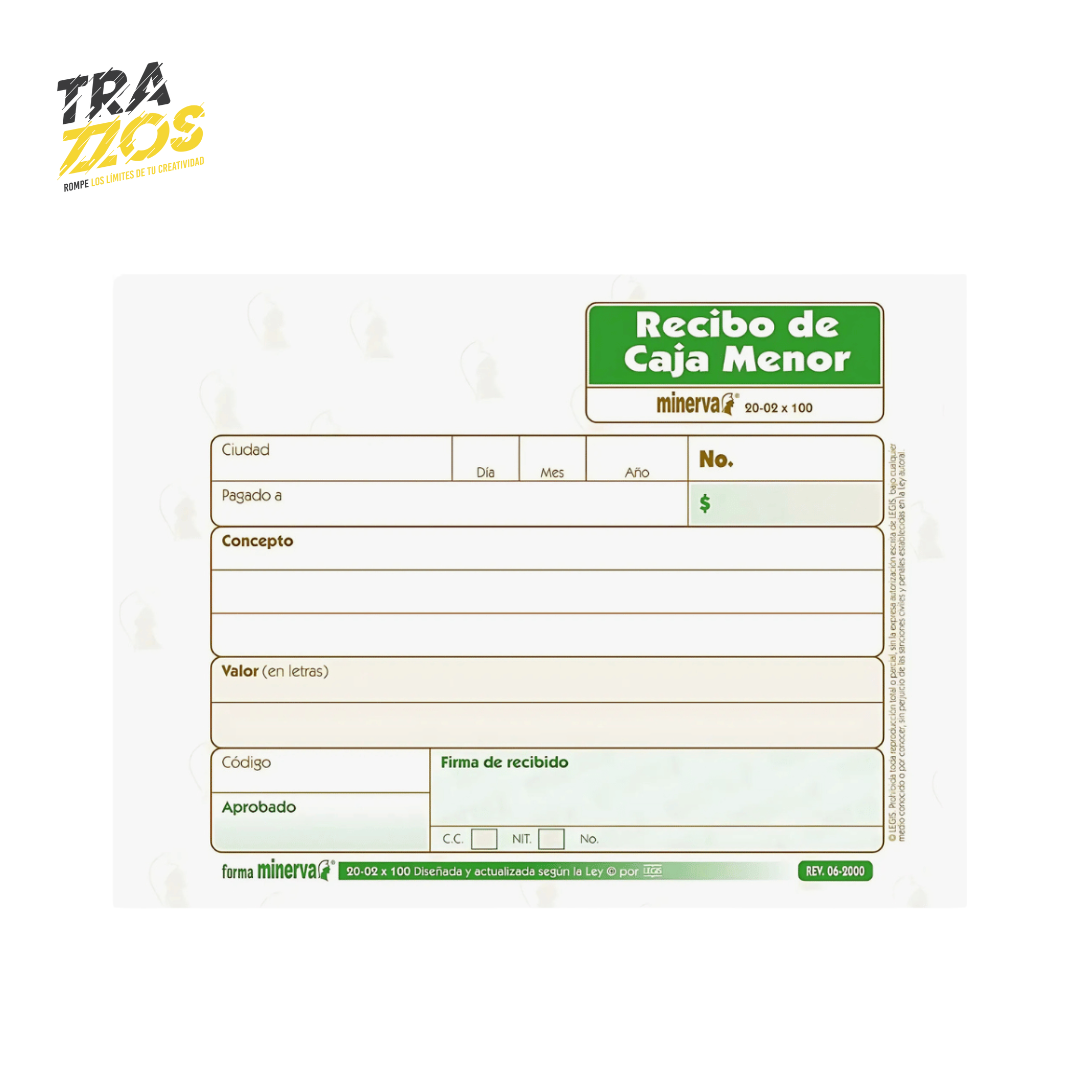 Formulario contable diseñado para documentar salidas de dinero por concepto de caja menor. Su formato estructurado permite un control claro y preciso de gastos operativos, facilitando la trazabilidad y aprobación interna.