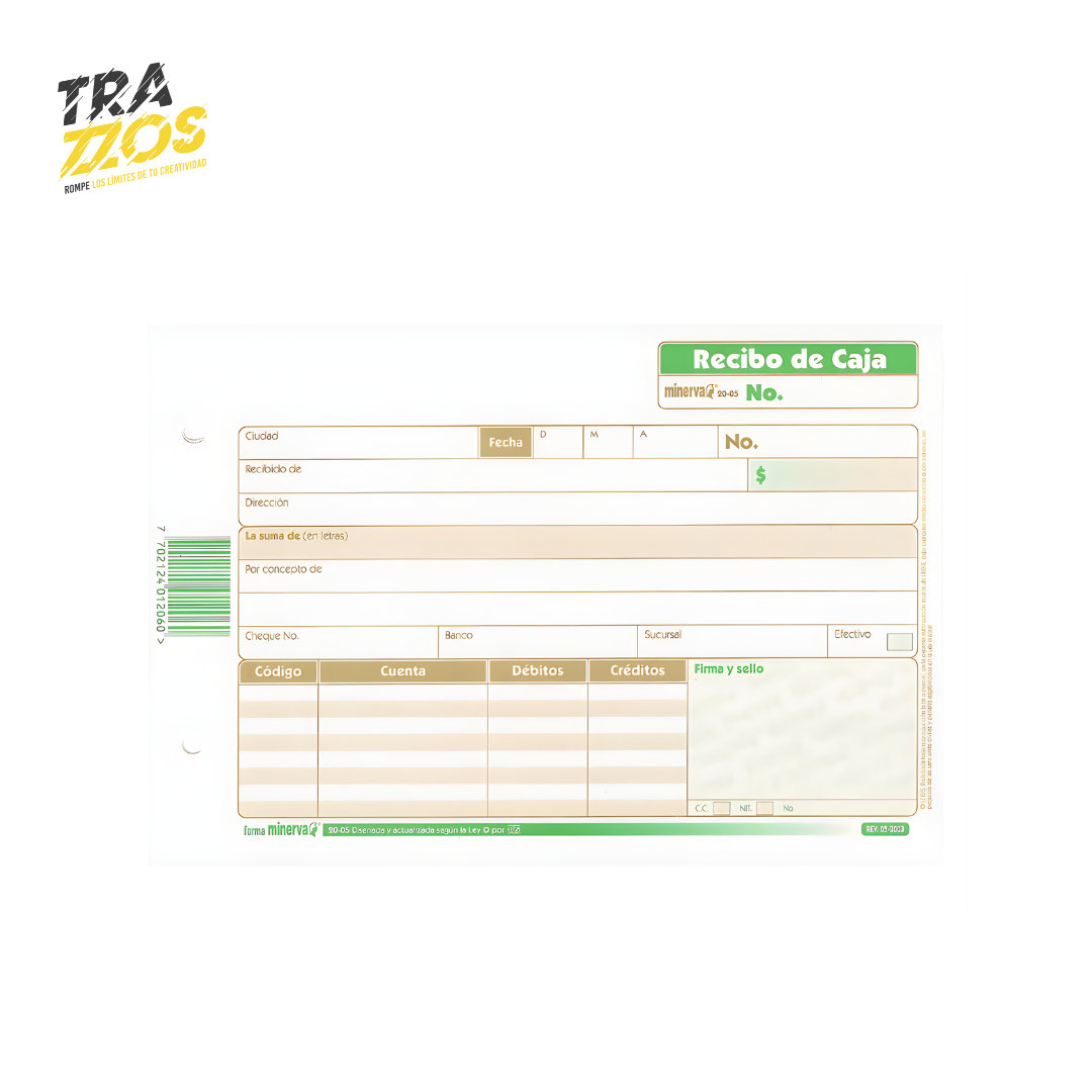 Formulario contable diseñado para documentar entradas de dinero en efectivo. Su estructura clara permite registrar de manera precisa los datos del pagador, el concepto del ingreso y los valores correspondientes, facilitando el control financiero y la trazabilidad contable.