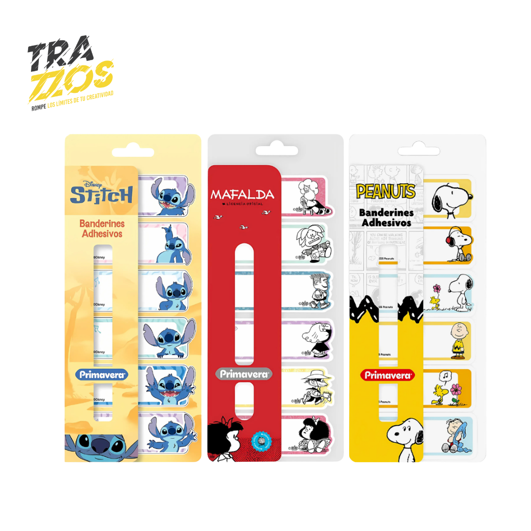 Estas banderitas adhesivas Primavera con diseños de Disney, Mafalda y Peanuts son perfectas para marcar páginas, dividir apuntes o resaltar información importante. Su adhesivo reposicionable permite pegarlas y retirarlas sin dañar el papel, ideales para estudiantes, oficinistas o amantes de la papelería con estilo.