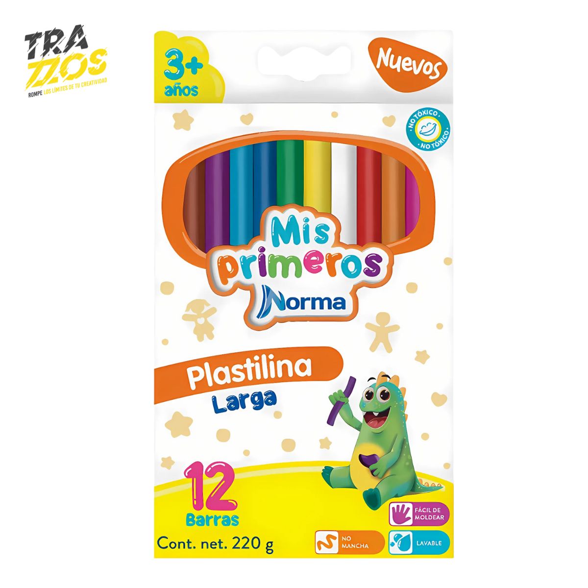Plastilina Norma x12 suave y moldeable, incluye 3 colores fluorescentes. Lavable, no tóxica y mezclable. Perfecta para niños y actividades creativas.