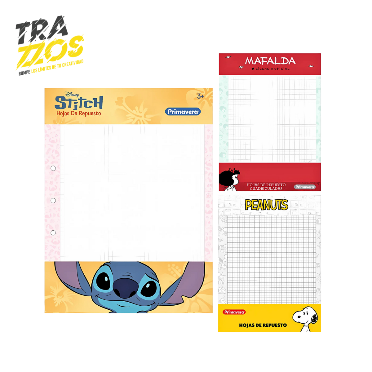 Haz que cada hoja cuente con este repuesto cuadriculado de la línea Primavera con diseños Disney. Ideal para estudiantes que aman organizar sus apuntes con estilo y un toque de fantasía.